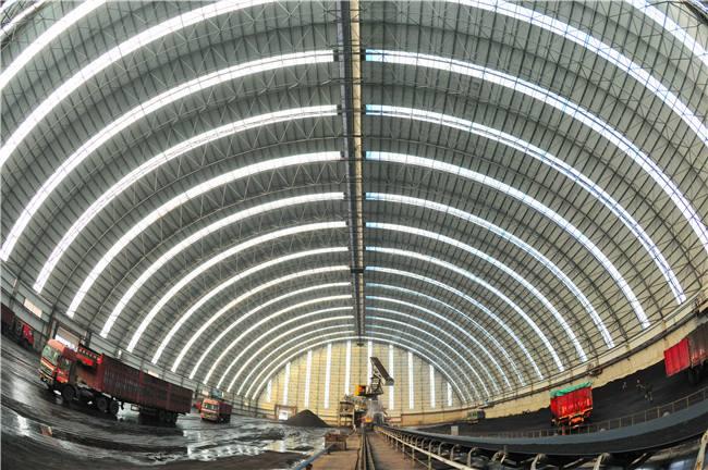 堆场料场封闭式主体结构为新型的钢开原网架结构,维修结构为开原钢结构开原不锈钢板和纤维增强塑料灯具,其外形以开原网架式和平板为主,连接柱开原施工自由,设置喷雾自动喷水系统,从而可以实现棚内所有物料的覆盖,减少物料在运输过程中的损耗,起到防尘的作用,减少工厂关闭后的二氧化硫排放量,50mg/m3颗粒排放量小于10mg/m3,非常适合低能耗。低闭库自动感应反应对库存轮胎进行清洁,确保轮胎不受道路污染;封闭的储存区可从源头控制粉尘污染,控制无序排放。